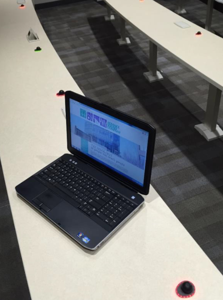 设计环境:阶梯教室,桌椅固定,所有桌面都固定装配Clockaudio的C012E-RF。