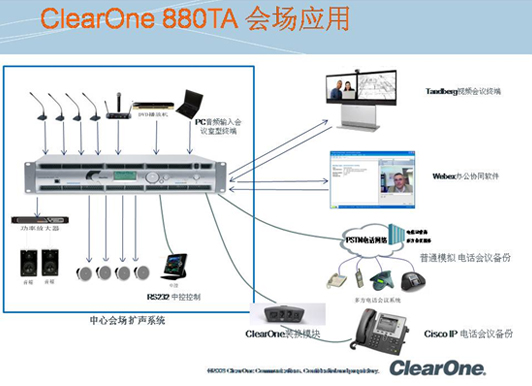 ClearOne Converge Pro 880TA--12*12数字音频媒体矩阵,适合视频会议室和电话会议室,内置ClearOne独有的分布式回声消除技术,内置电话耦合器,内置调音台、均衡器、反馈抑制器、压限器、时延、音频矩阵等,支持网络远程管理,并创造性的内置4通道功放。